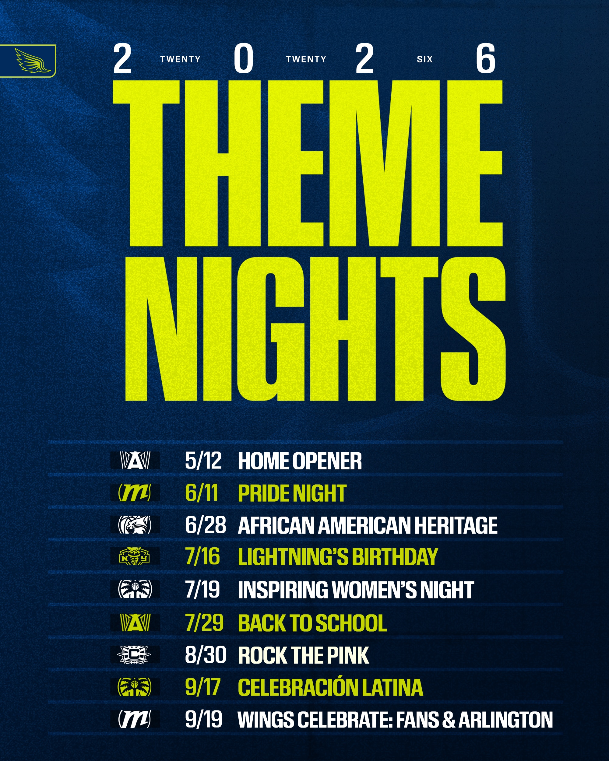 Big matchups. Bigger moments. Your 2026 theme nights are here.